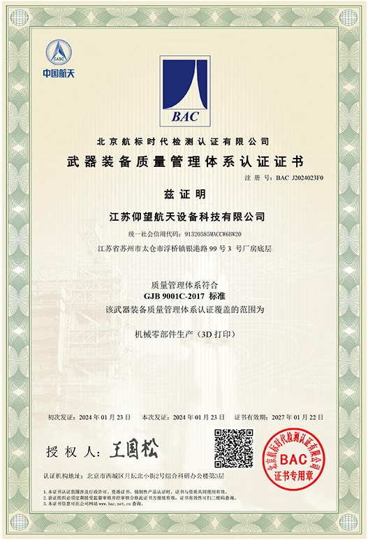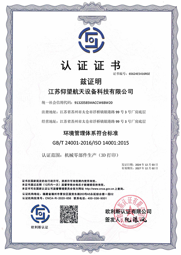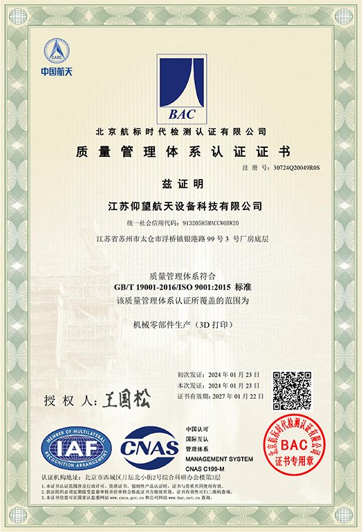 江苏仰望航天设备科技有限公司位于江苏太仓,专注为商业火箭和商业卫星客户提供基于金属增材制造工艺的精密零部件设计优化与产品制造服务,是目前国内成功发射的商业航天增材零部件最多的制造商之一。